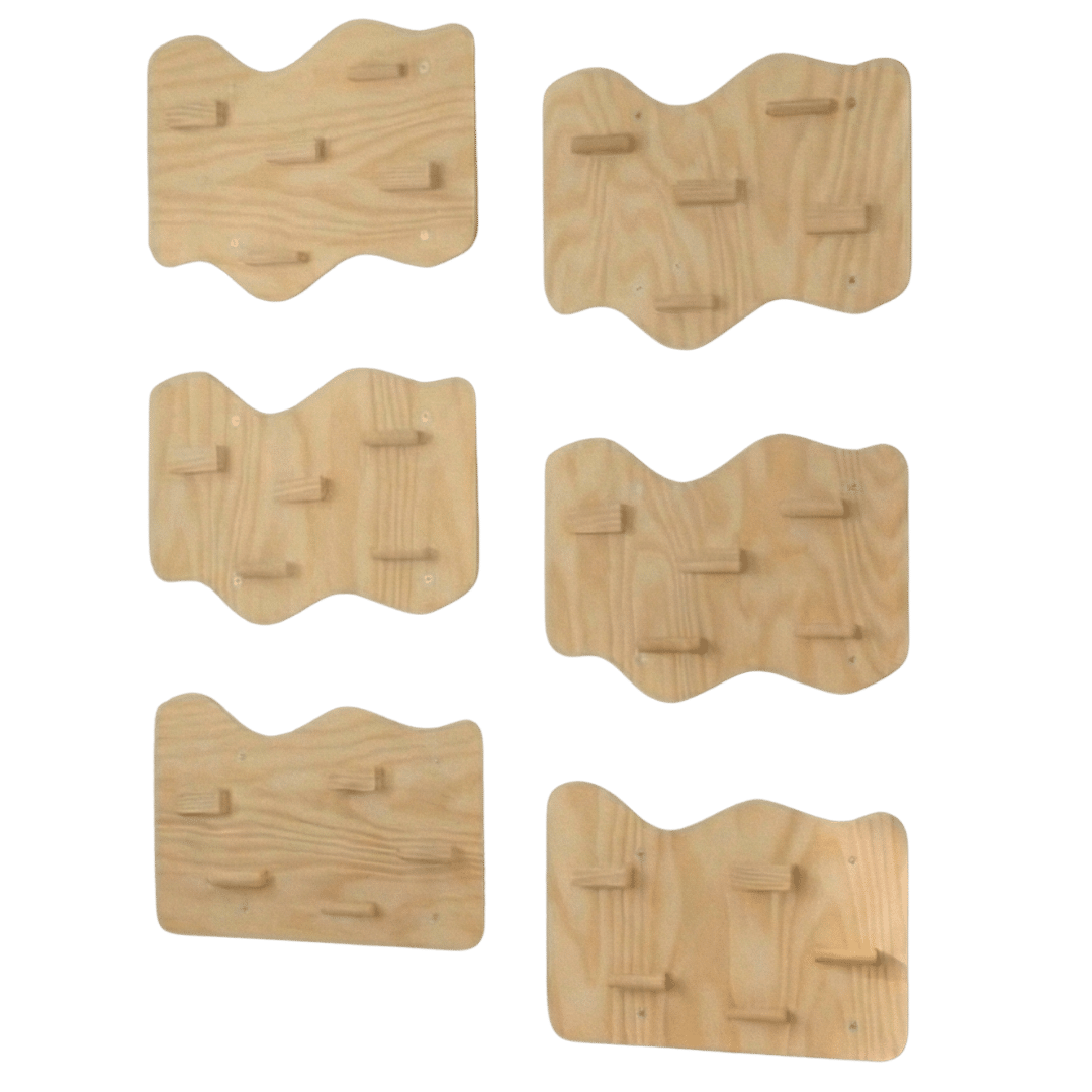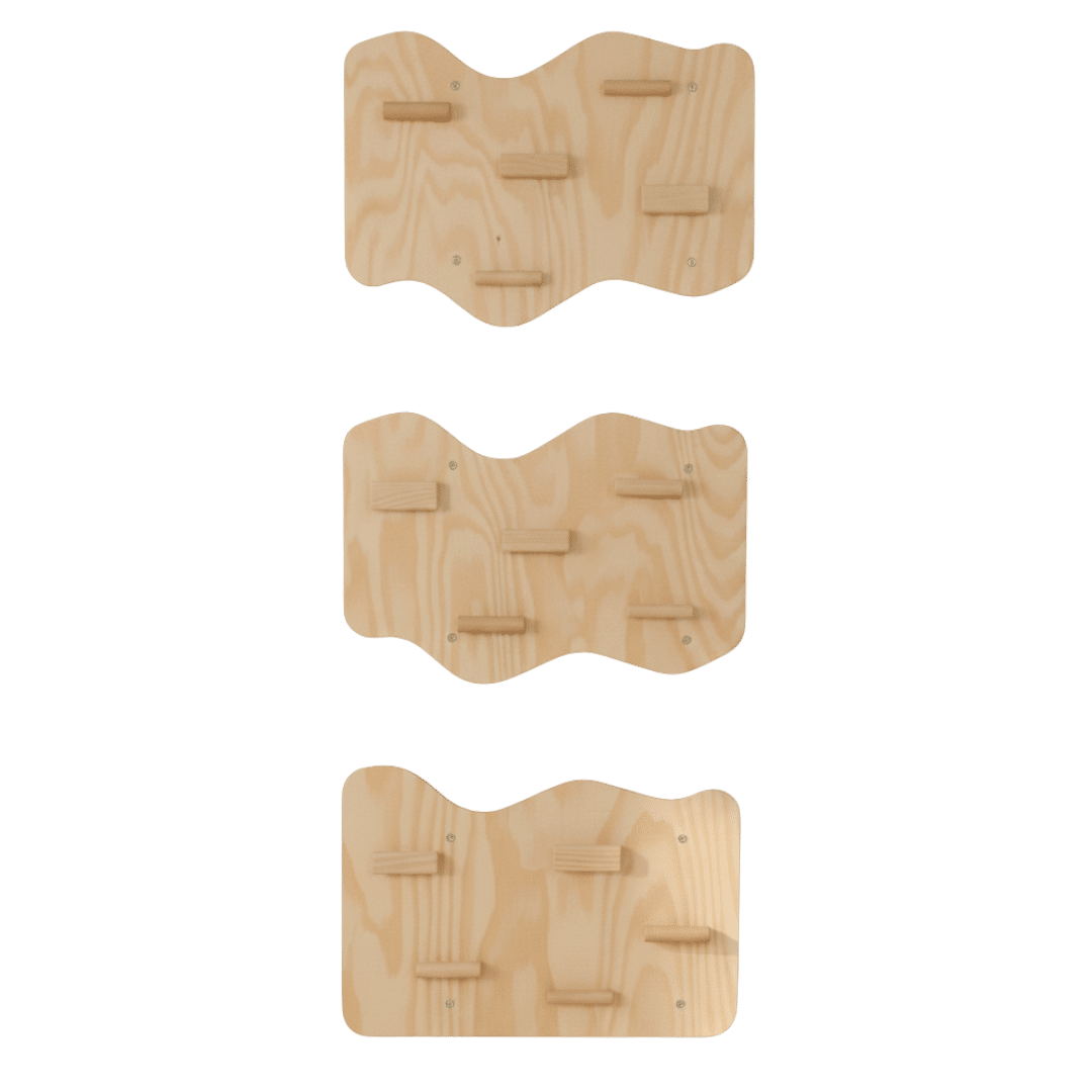 Este panel de escalada interior no es solo un juego; es una herramienta de crecimiento que combina desafío y diversión, integrándose con estilo en la decoración de tu hogar gracias a sus acabados naturales.